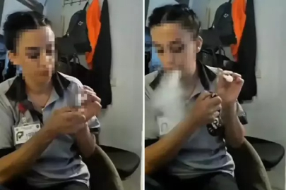 Güvenlik görevlisi kadın görev sırasında uyuşturucu madde içerken görüntülendi