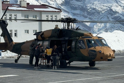 Hakkari'nin Şemdinli ilçesinde hamile kadın, askeri helikopterle Hakkari Devlet Hastanesi'ne sevk edildi.