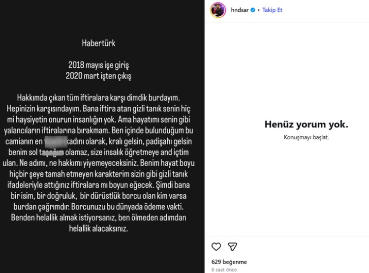HaberTürk'te çalıştığı dönemde yöneticileri olan isimleri tek tek paylaşan Hande Sarıoğlu sert ifadeler kullandı.