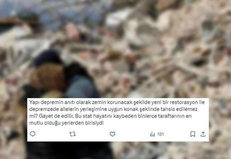 Kahramanmaraş merkezli depremden en çok etkilenen illerden biri olan Hatay'dan gelen görüntüler izleyenlerin yüreğini burktu. Hatayspor ekibinin deprem felaketi öncesi maçlarını oynadıkları stadyum şu ana kadar terk edilmiş durumda... Yeni Hatay Stadı'nın son halini görenler gözyaşlarını tutamadı. Sosyal medyadaki bazı kullanıcılar videoyu izledikten sonra birçok mesaj yayınladı.