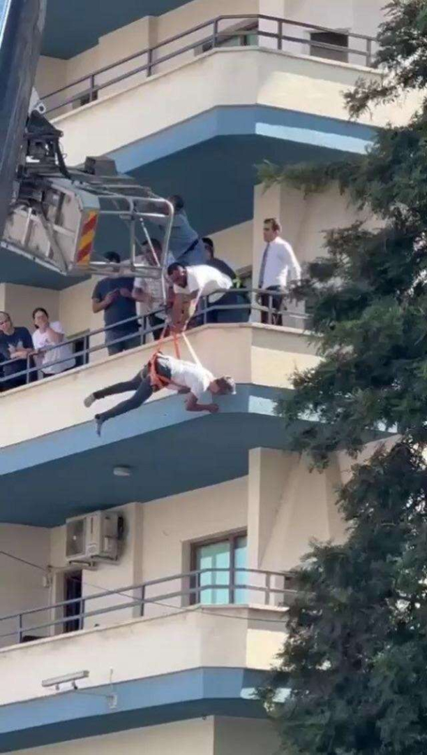 Olay, Çukurova ilçesine bağlı Beyazevler Mahallesi'nde gerçekleşti. Vinç ile otelin camını silmeye çalışan 2 işçi, vincin sepetinin kırılması sonucu havada asılı kaldı. Sepet yan dönerken, sepetten düşen işçileri, emniyet için taktıkları kemer kurtardı. 2 işçi havada asılı kalırken, vatandaşlar ise otelin yanında bulunan bir binanın 3. katına çıkarak, işçileri balkona çekip kurtardı. O anlar, cep telefonu ile saniye saniye görüntülenirken, görgü tanıkları dehşet anlarını anlattı.