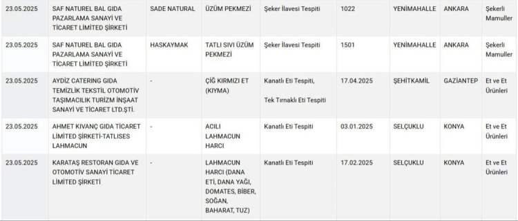 23 Mayıs tarihli listede hile yapan firmalar ve ürünleri tek tek paylaşılırken, mide bulandıran detaylar yer aldı. 2 ilde vatandaşa at ve eşek eti yedirildiği belirlendi.