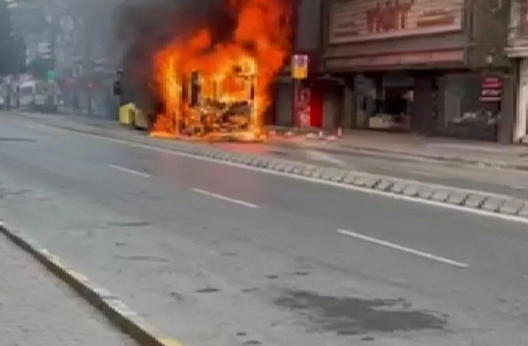 İstanbul'da sabah saatlerinde hareketli dakikalar yaşandı. Bir İETT otobüsü yolcu almak için durduğu durakta yanmaya başladı. Durumu fark eden şoförün dikkati ise olası bir facianın önüne geçti. Şoför araçta bulunan 10 yolcuyu hızlı bir şekilde tahliye ederken, alev topuna dönen otobüs kullanılamaz hale geldi. O anlar ise kameralara yansıdı.