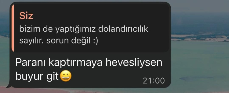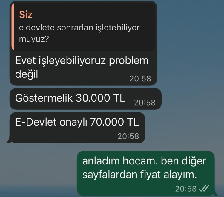 "WhatsApp'te mülakat için diploma istediğimi yazdım. Tabii e-devlet'e işlediklerini de iddia ettiler. Paket sorunca küçümseyen dolandırıcı tarifelerin ikiye ayrıldığını söyledi.