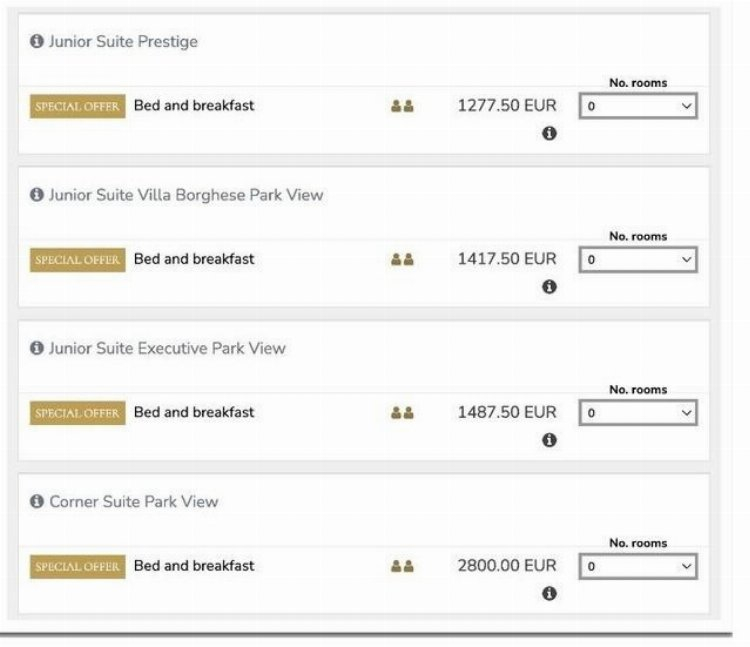 Patronlar Dünyası'nda yer alan habere göre; 5 yıldızlı Parco dei Principi Grand Hotel’in kendi internet sitesindeki verilere göre otelin gecelik fiyatı iki kişilik odalar için 1277.5 Euro’dan (yaklaşık 44 bin 670 TL) başlıyor ve 2800 Euro’ya kadar (yaklaşık 97 bin 956 TL) çıkıyor.