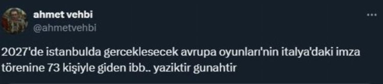 Öte yandan İBB Başkanı İmamoğlu'nun 73 kişilik bir heyetle Roma'ya gitmesi tartışma yarattı. Sosyal medya üzerinden bazı kullanıcılar, hoteldeki lükse ve harcanan paralara tepki gösterdi.