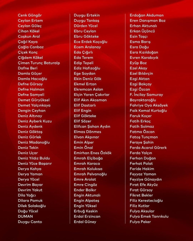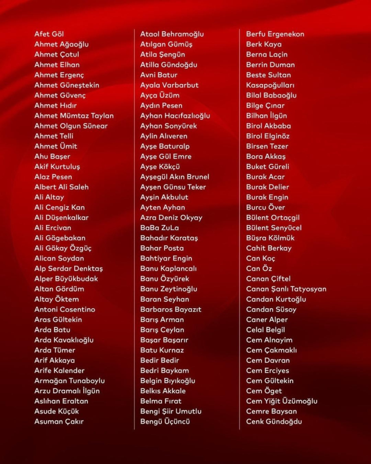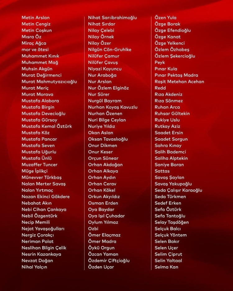 'Büyükşehir Çalışıyor' adlı X hesabının paylaşımına göre bu isimler arasında Ali Atay, Defne Samyeli, Selçuk Yöntem, Birsen Tezer, Bülent Ortaçgil, Cem Yiğit Üzümoğlu, Ceylan Ertem, Duman, Mor ve Ötesi, Necip Memili, Nihal Yalçın, Nuri Bilge Ceylan, Ozbi, Redd, Rutkay Aziz, Özge Borak ve Salih Bademci yer aldı.