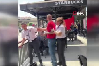 Ankara'nın Keçiören ilçesinde bir vatandaş, İsrail'i protesto etmek amacıyla Starbucks'ta oturan müşterilere tepki gösterdi.