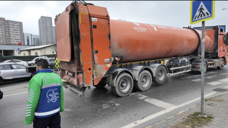 İstanbul Ataşehir'de İBB'ye ait atık transfer kamyonunun çarptığı skuter sürücüsü ağır yaralandı