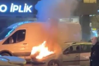 İstanbul Bayrampaşa’da alev alev yanan araca vatandaşlar müdahale etti