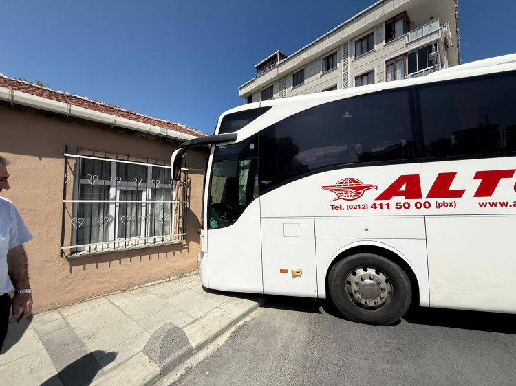 İstanbul'da freni boşalan yolcu otobüsü kayarak gecekonduya çarptı