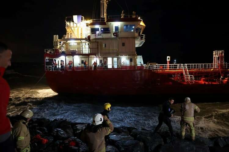 İstanbul Zeytinburnu açıklarında sürüklenen bir tanker karaya oturdu. Olay yerine gönderilen kurtarma ekipleri, tankerde mahsur kalan 11 kişilik mürettebatı kurulan düzenekle kurtardı.