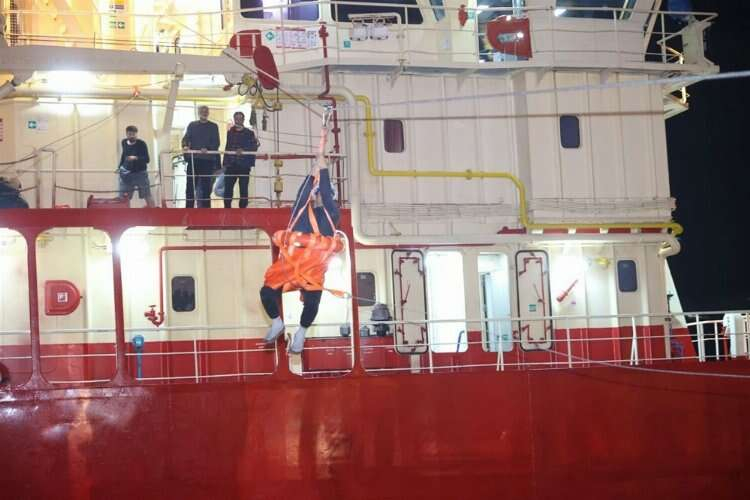 Ekiplerin çalışmasıyla karayla gemi arasında kurulan düzenekle mahsur kalan 11 kişilik mürettebat kurtarıldı.