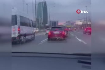 İstanbul'da makas atıp trafiği tehlikeye sokan sürücü kamerada