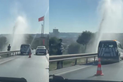 İstanbul Büyükçekmece’de E-5 karayolu kenarında su borusu patladı. Sular metrelerce yukarı çıkarken, trafikte aksamalar yaşandı.