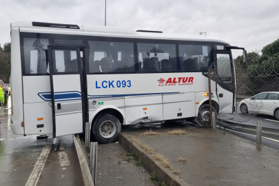 İstanbul Eyüpsultan'da yağmur nedeniyle kayganlaşan yolda servis minibüsü kayarak bariyerlere çarptı. Yan dönen servisin şoförü kazadan yara almadan kurtulurken, araçta maddi hasar meydana geldi.
