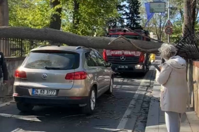 İstanbul Sarıyer’de şiddetli rüzgara dayanamayan ağaç, otomobilin üzerine devrildi. Olayda ölen ya da yaralanan olmazken, araçta hasar meydana geldi.