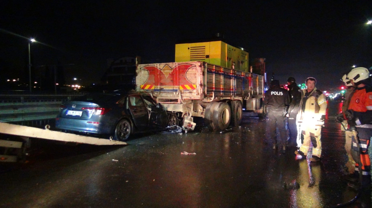 İstanbul Silivri'de seyir halindeyken tekeri kopan otomobil kamyona çarptı