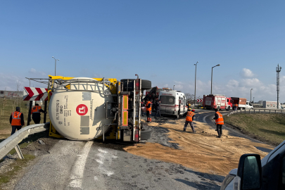 TEM Otoyolu İstanbul Çatalca Gişeleri mevkiinde virajı alamayan atık madde yüklü tanker devrildi. Yaralanan tanker sürücüsü hastaneye kaldırılırken bölgede uzun süre trafik yoğunluğu yaşandı.