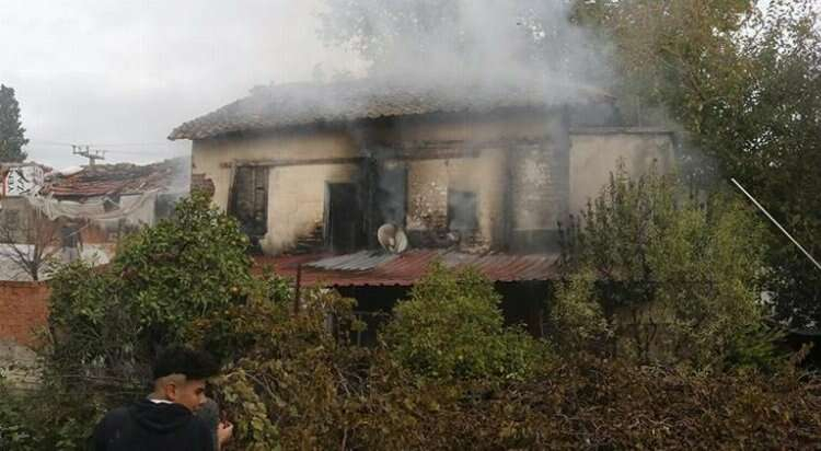 Antalya’da, koruma altındaki tarihi evde elektrikli sobanın devrilmesiyle çıkan yangında Cumali Çiftçi, eli yanan tekerlekli sandalyedeki engelli oğlu Cengizhan'ı çıkarıp arka bahçeye aldı.