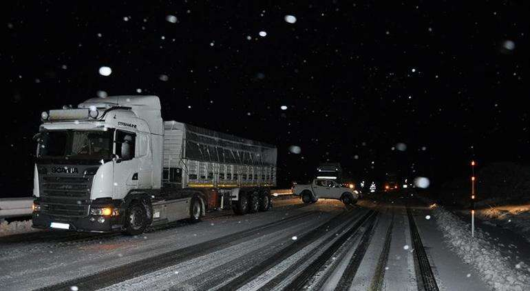 Kent genelinde etkili olan kar yağışı ve tipi sonrası Kars-Ardahan karayolu üzerindeki Susuz ilçesine bağlı 2 bin 128 rakımlı İncilipınar köyü yakınlarında bazı TIR'ların yolda kalması nedeniyle ulaşım tek şeritten sağlandı. Yoğun buzlanma nedeniyle saatlerce mahsur kalan TIR sürücüleri, Karayolları 18'inci Bölge Müdürlüğü ekiplerince yapılan kumlama ve tuzlama çalışması sonucu yollarına devam etti. Bazı TIR sürücüleri ise orta refüjdeki toprağı eliyle yola atarak kayganlaşmayı önlemeye çalıştı. Yolda kalan TIR sürücüsü Abdulbaki Kılıç, "İstanbul’dan yüklediğim jeneratörleri Azerbaycan’a götürüyorum. Kar yağdı hazırlıksız yakalandık. İki saattir burada mahsur kaldık. Karayollarını bekliyoruz, bizi çıkartırsa iyi olur, çıkartmasa da buradayız, yapacak bir şey yok" dedi.