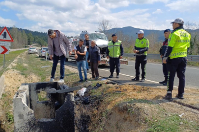 Mustafa D. (48) idaresindeki hafif ticari araç, Karabük-Kastamonu kara yolu Sarıahmetli köyü yakınlarında kontrolden çıkarak refüjdeki beton menfeze çarptı.