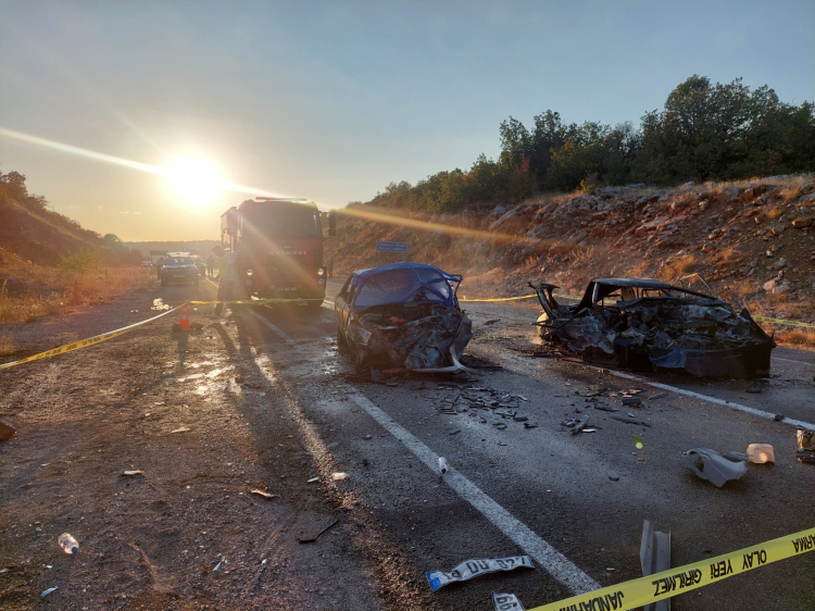 Karabük'te kafa kafaya çarpışan iki otomobil alev aldı: 3 ölü, 5 yaralı