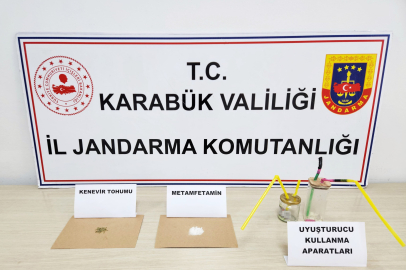 Edinilen bilgiye göre, Karabük İl Jandarma Komutanlığı unsurlarınca, savcılık koordinesinde kent merkezinde bir şahsın ikametgâhında ve üzerinde yapılan adli aramada, 2,86 gram metamfetamin maddesi ve 140 gram kenevir tohumu ile 2 adet uyuşturucu kullanma aparatı ele geçirildi. Jandarma ekiplerince gözaltına alınan şahıs çıkarıldığı mahkemece tutuksuz yargılanmak üzere serbest bırakıldı.