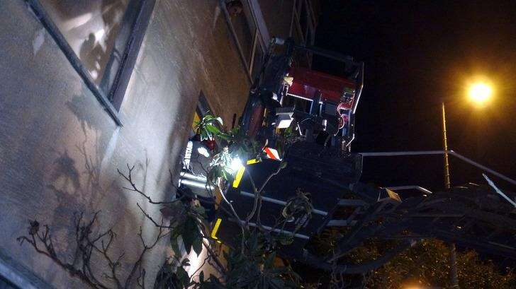 Adrese gelen itfaiye ekipleri, merdiven yardımı ile eve girdi ancak yine Hasan Ergin'i bulamadı.