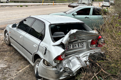 Kastamonu'da virajı alamayan otomobil, arızası sebebiyle yol kenarında park halinde olan araca çarptı. Kazada 4 kişi yaralandı.