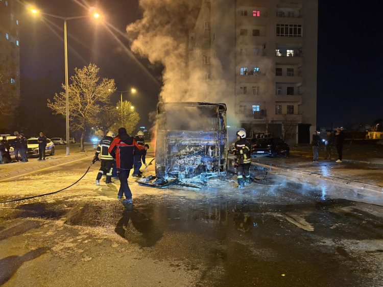 Kayseri'de halk otobüsü alev aldı