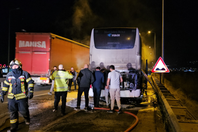 Kayseri'de turistleri taşıyan yolcu otobüsünün motor kısmında çıkan yangın itfaiye ekipleri tarafından söndürüldü.
