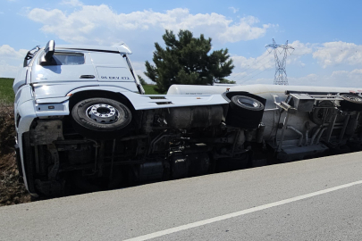Kırıkkale'de akaryakıt yüklü tanker şarampole devrildi