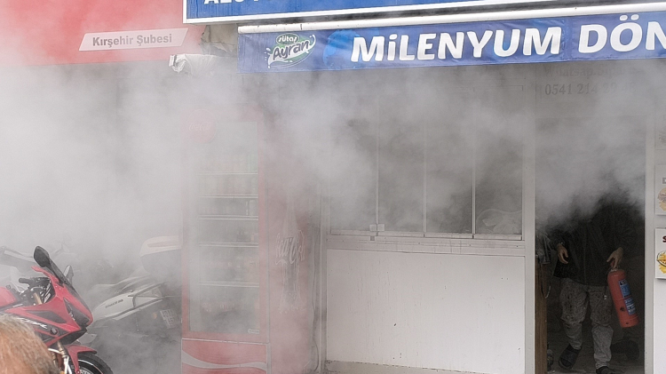 Yangın, Terme Caddesi'nde bulunan bir dönerci dükkanında çıktı. Edinilen bilgiye göre, tadilat ve temizlik çalışması yapan esnafın yağ çözücüyü metal baca borusuna dökmesi ile çıkan yangın büyüdü. Metal baca borusunun alev almasıyla çıkan yangına üst katta bulunan esnaf, damacanaya doldurduğu suyla müdahale ederek yangının büyümesini engelledi. Olay yerine gelen itfaiye ekiplerinin müdahalesiyle yangın söndürüldü. İtfaiye ekiplerinin soğutma çalışmasının ardından cadde trafiğe açıldı. Vatandaşlar ise o anları cep telefonlarıyla kayda aldı.