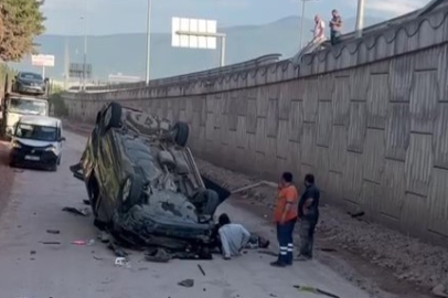 Kocaeli'de hafif ticari araç 5 metre yükseklikten uçarak ters döndü: 2 yaralı