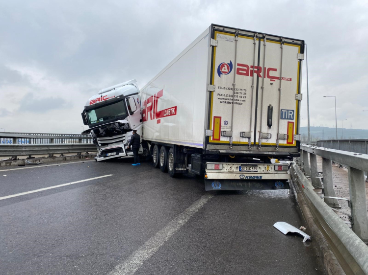 Kartepe ilçesi TEM Otoyolu'ndan Kuzey Marmara bağlantı yolundaki köprü üstünde trafik kazası meydana geldi. Yağışlı havanın etkisiyle kayganlaşan yolda seyir halinde olan Mercedes marka tır, sürücüsü A.K.'nin direksiyon hakimiyetini kaybetmesi sonucu makasladı. 33 AUK 007 plakalı tırın karıştığı kazanın ardından bölgeye sağlık ve jandarma ekipleri sevk edildi. Yapılan kontrollerde kazada yaralanan olmadığı belirlendi. Makaslayan tır, çekici vinci yardımıyla yoldan kaldırılırken, kısa süreli aksayan trafik çalışmaların tamamlanmasının ardından yeniden normale döndü.