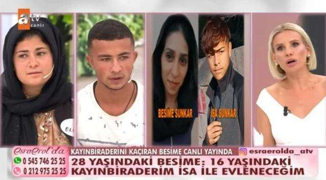Esra Erol'da programına başvuran Taha ve Elif Sunkar, yengeleri Besime Sunkar hakkında şok edici iddilar ortaya attı. Sunkar kardeşler, 3 ağabeyinin öldüğünü 16 yaşındaki küçük kardeşleri İsa'nın yengeleri Besime Sunkar tarafından kaçırıldığını iddia etti. İddiaların ardından canlı yayına bağlanan Besime Sunkar ise "İsa benim kayınbiraderim ama kocam olacak" dedi.