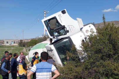 Konya'nın Karapınar ilçesinde beton mikseri devrildi. Kazada, sürücü ve adres tarifi için araca aldığı çocuk yaralandı.