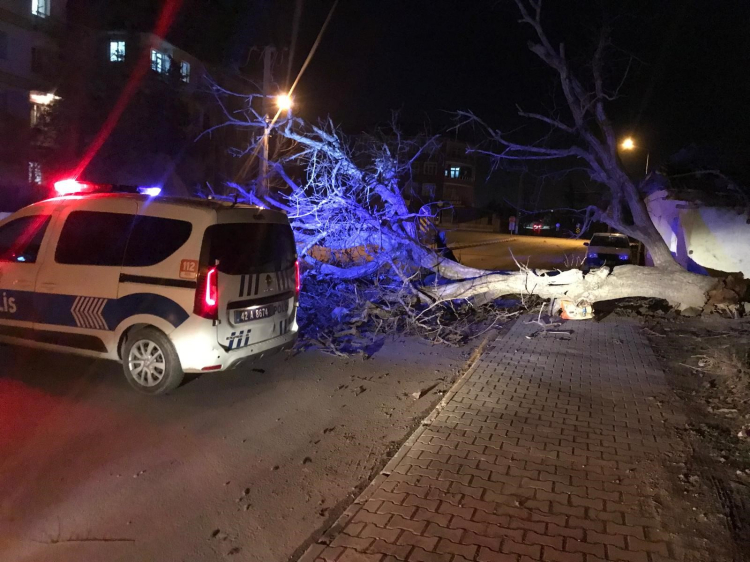 Konya Ereğli’de şiddetli rüzgar ağaçları devirdi, çatıları uçurdu