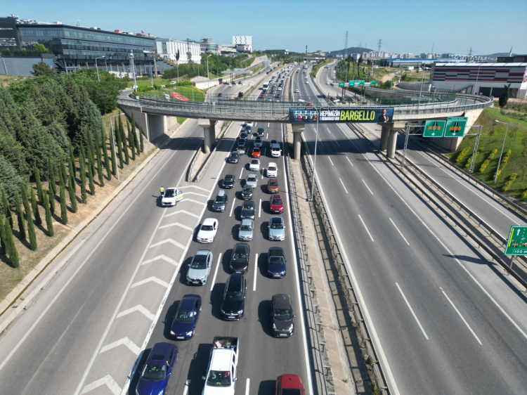 Bayram tatilinin sona ermesiyle dönüş yoluna çıkan vatandaşlar, Kocaeli'deki otoyol ve ana yollarda kilometrelerce trafik kuyruğu oluşturdu. Oluşan trafik, havadan görüntülendi.