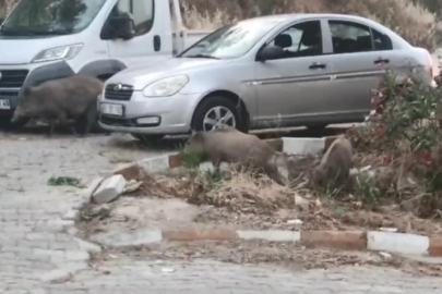 O anlar ise çevre sakinlerinin cep telefonu kamerasına yansıdı. Görüntüde domuzların sokak aralarında yiyecek araması yer aldı.