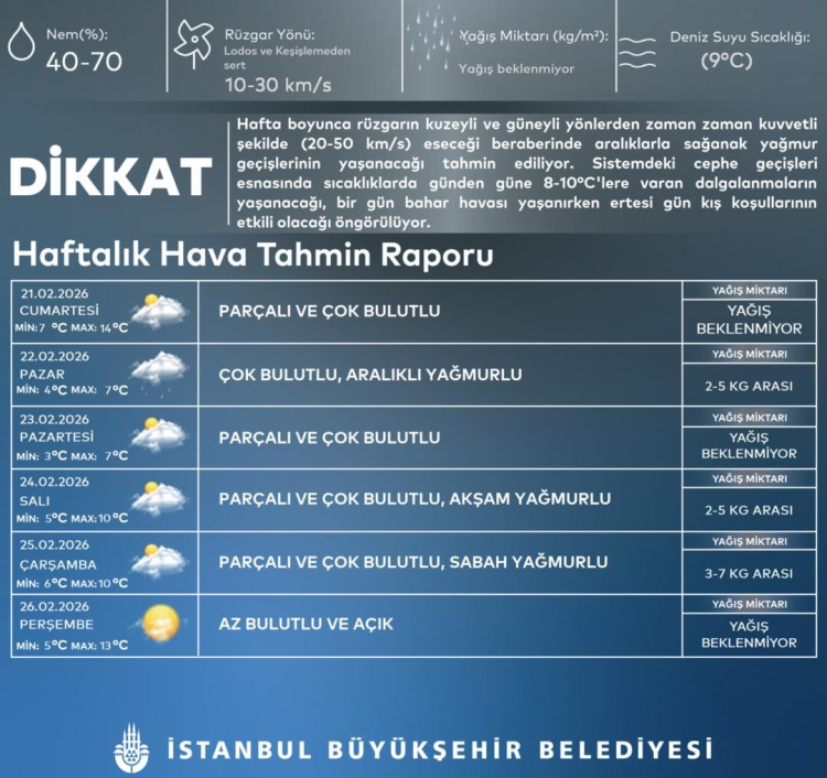 AKOM’UN İSTANBUL İÇİN HAFTALIK HAVA TAHMİNİ