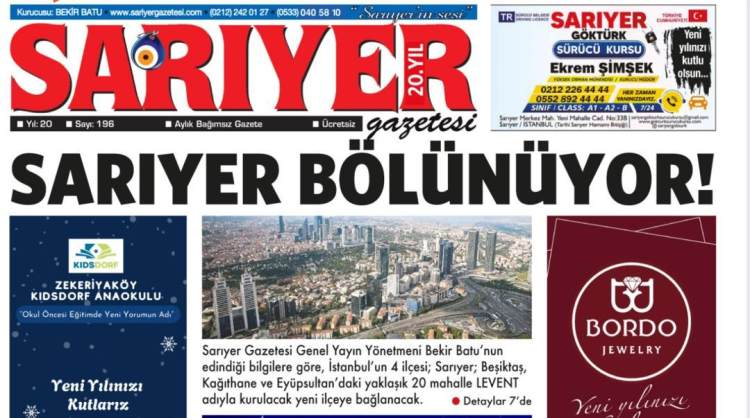 İstanbul'da ilçe sayısı 40'a çıkıyor, yeni ilçe geliyor. Çok konuşulacak iddia Sarıyer Gazetesi Genel Yayın Yönetmeni Bekir Batu'dan geldi. Bir anda gündem yaratan habere göre İstanbul'da Beşiktaş, Sarıyer, Kağıthane ve Eyüpsültan ilçelerindeki bazı mahallelerin birleşmesiyle yeni bir ilçe kurulacak.