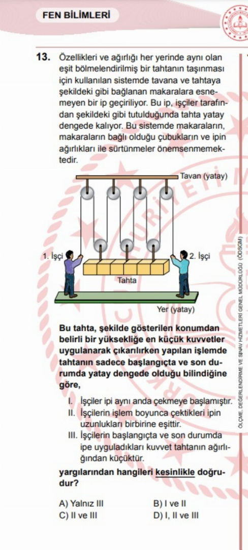 Bakanlıkça açıklanan A kitapçığında 13. sırada yer alan sorunun doğru yanıtı olarak cevap anahtarında C seçeneği açıklandı.