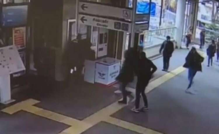 İstasyonda temizlik görevlisi olarak çalışan Çetin Aktay’ın yüzü maskeli ve kapüşonlu halde, aynı istasyonda güvenlik görevlisi olarak çalışan Gülnihal Karadereli’ye bıçakla saldırması istasyonun güvenlik kamerasına yansıdı.