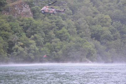Türk Hava Kuvvetleri'nin hayat kurtaran kanatları ‘Melek Filo', Amasya'nın saklı cenneti Boraboy Gölü Tabiat Parkı'nda düzenlenen gösteride nefesleri kesen bir kurtarma tatbikatına imza attı. Tatbikatı izleyenler havadaki helikopteri fotoğraflayıp selfie yapmaya da çalıştı.