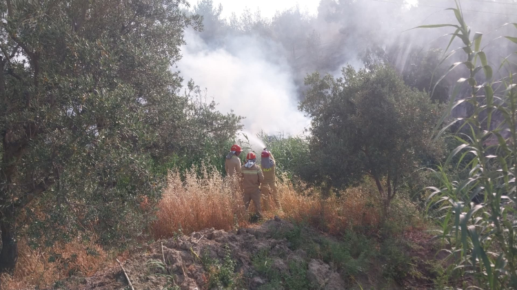 Mersin'in Mut ilçesinde ormanlık alana yakın tarım arazisinde çıkan yangın, ekiplerin çalışmasıyla kontrol altına alındı.