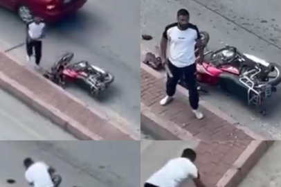 Sürücüyü yakalayamayan şahıs, caddede terk ettiği motosiklete zarar verdikten sonra olay yerinden uzaklaştı. O anlar ise çevredeki vatandaşlar tarafından cep telefonu kamerası ile görüntülendi.