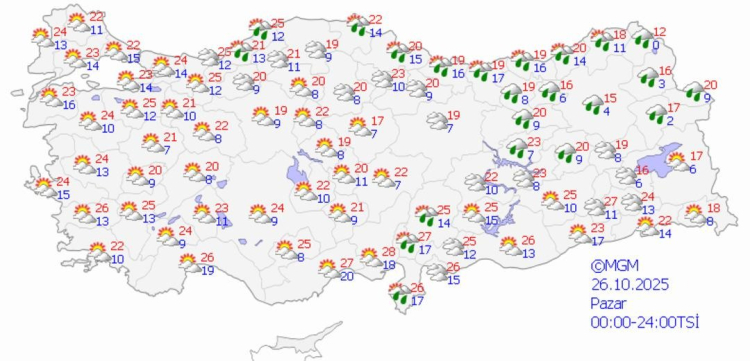 26 EKİM PAZAR HAVA DURUMU