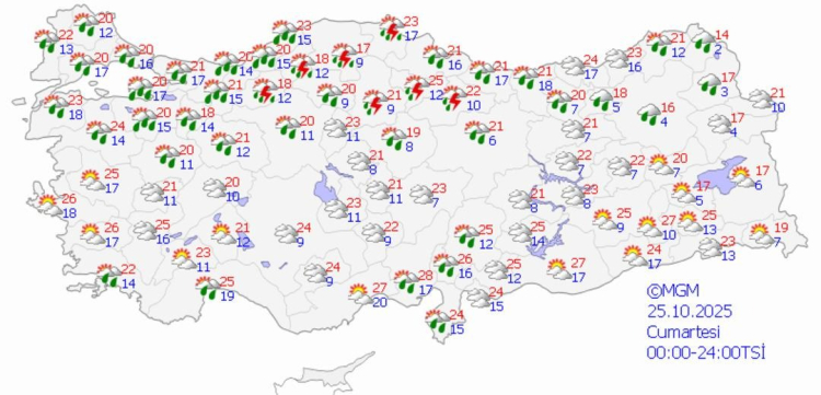 25 EKİM CUMARTESİ HAVA DURUMU